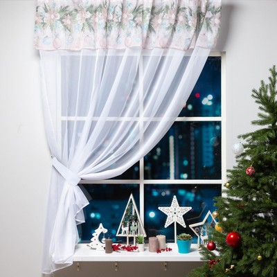 Кухонное окно не должно проигрывать по своей красоте другим. Поэтому предлагаем повесить тематические шторы. Тогда гости, заглядывая в вашу «рабочую» зону, смогут восхититься и блюдами и декором. А если добавить гирлянду и специальные наклейки, прохожие на улице тоже смогут вдохновиться новогодним настроением.