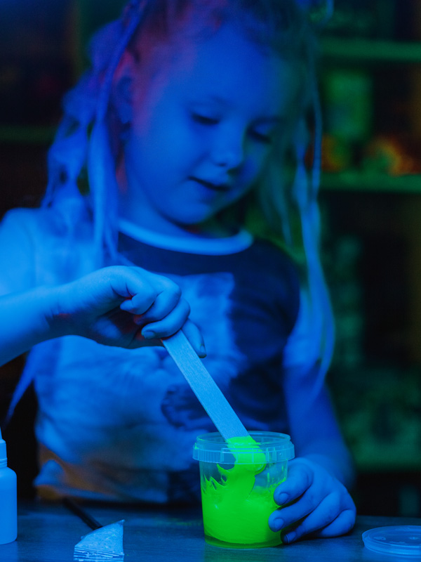 Если на улице очень холодно или ребёнка туда не тянет — пусть позанимается дома. Например наукой. Можно устроить безопасный и наглядный вулкан в бутылочке. Или создать мини-планетарий. А если ребёнок увлекается слаймами — пусть сделает свой. С блёстками, красителем или глазами? Можно сделать любой, набор позволяет создать 3 разных слайма.