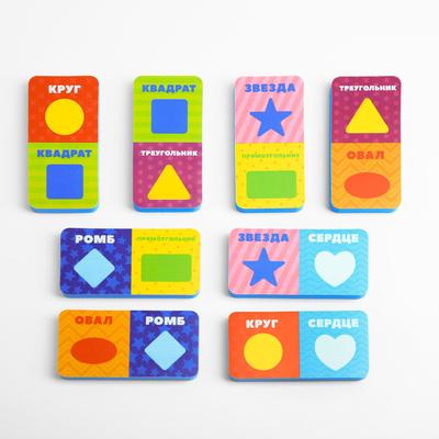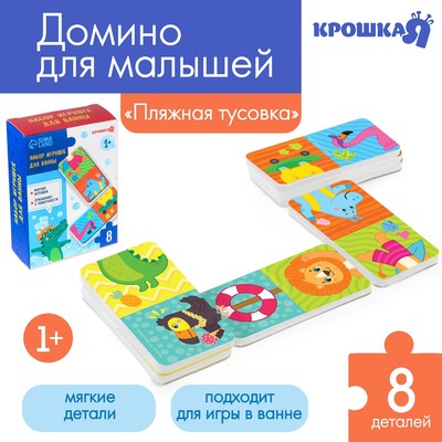- Домино для ванны с картинками зверей. Детальки будут плавать на поверхности воды во время купания, а ребёнок — совмещать половинки.