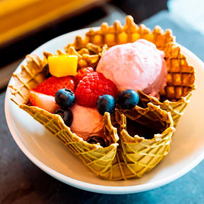 - Снимите готовую вафлю и сразу сверните её в рожок, пока не остыла.