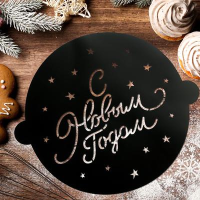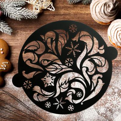 Вместо мандариновых долек можно украсить десерт праздничным узором. Для этого используйте тёртый белый шоколад и специальный трафарет.