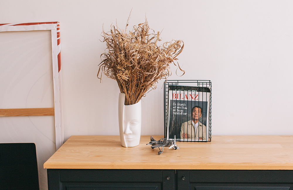 Основные материалы в индустриальном стиле — бетон, кирпич, металл и дерево. Именно из них лучше выбирать мелкий декор для помещения. Например бетонные или деревянные кашпо.