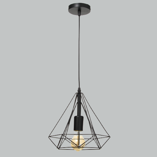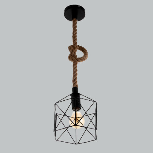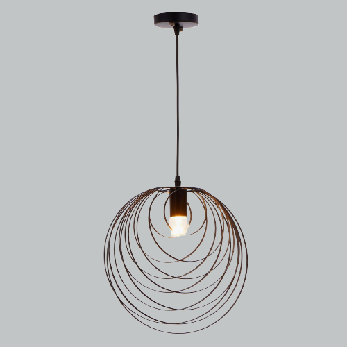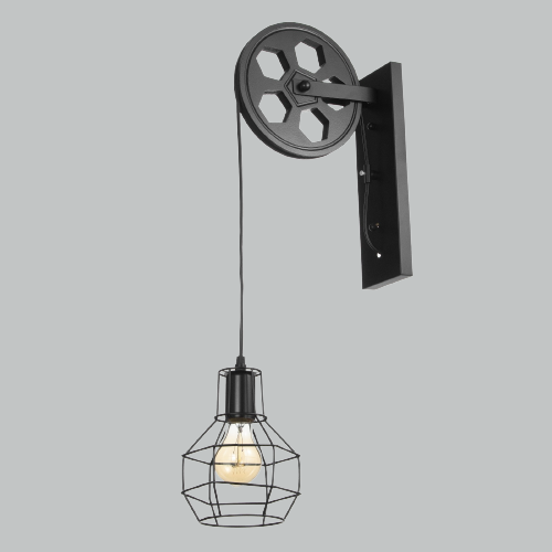 Подойдут лаконичные модели тёмных оттенков, из матового или патинированного металла. А особый шарм помещению придаст светильник с плафоном-клеткой, чтобы просматривалась лампочка.