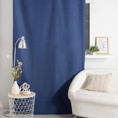 Подчеркнуть грубость стилистики помогут лаконичные модели из льна, хлопка или рогожки. Подходящие цвета — серый, коричневый, белый и глубокий синий. Допустимы яркие акценты и геометрические рисунки. Например, на окна можно повесить серые шторы блэкаут, а на диване расположить пару ярких подушек.