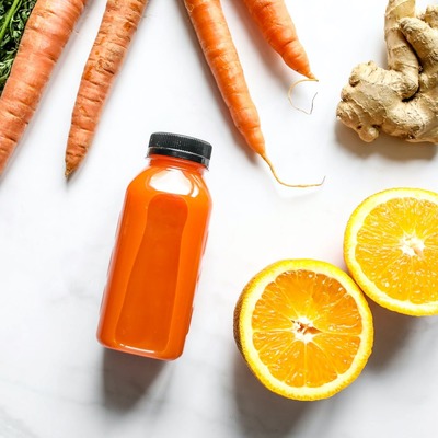 Выжмите сок из моркови, апельсина и яблок. Вылейте в чашу блендера, добавьте бананы, имбирь и мяту, затем взбейте до однородности. Разлейте по стаканам и наслаждайтесь!