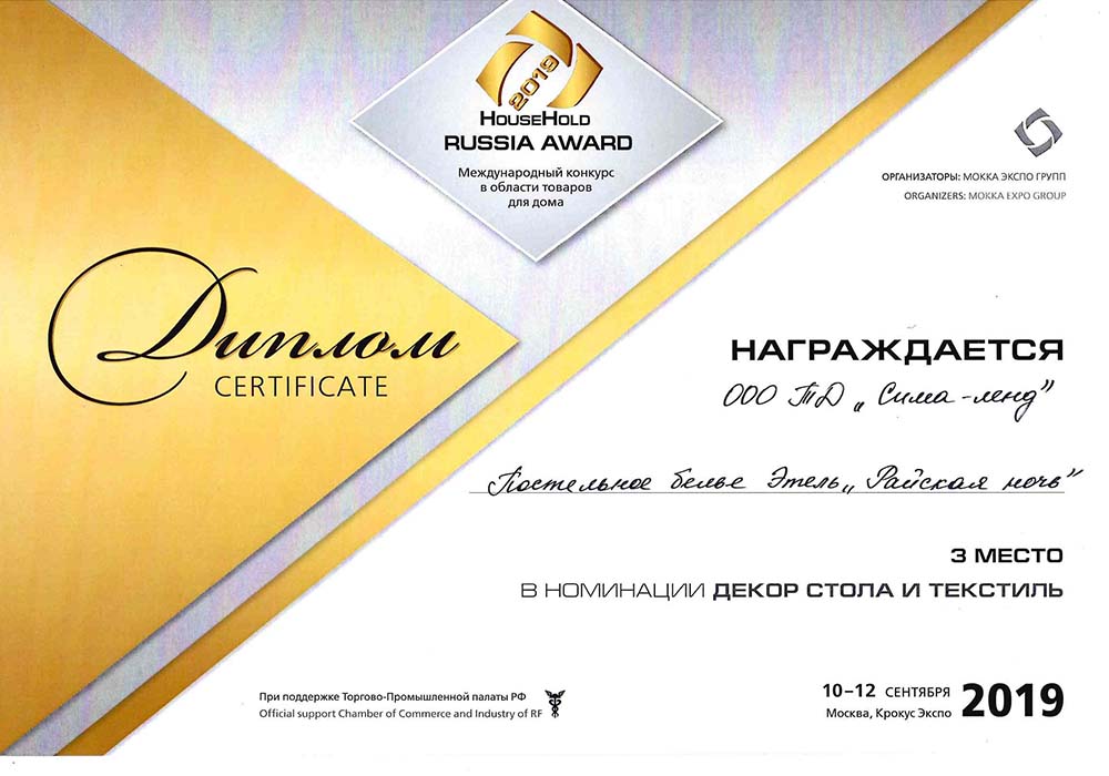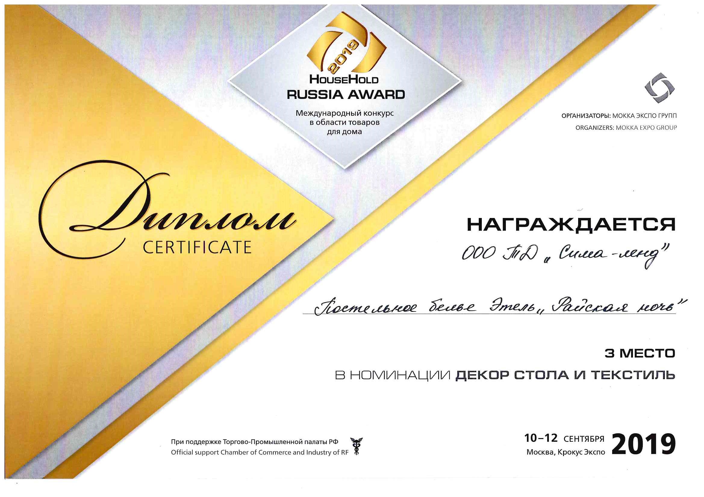 Конкурс HouseHold Russia Award — 2019 проводится в рамках 26-й Международной выставки HouseHold Expo — 2019. Целью этого конкурса является выявление качественных продуктов и их продвижение на рынке. Конкурс проходит при участии Всероссийской организации качества