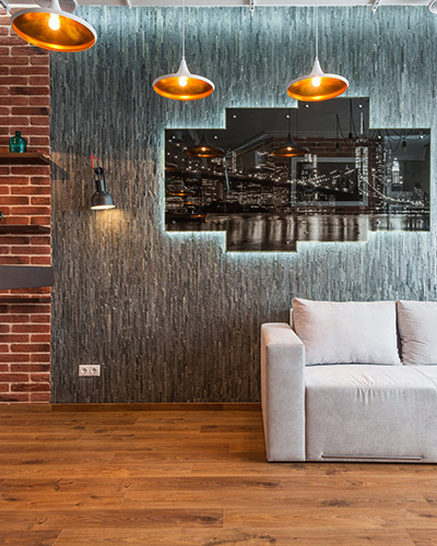 Дизайнеры часто используют вертикальное освещение, чтобы расширить и углубить пространство. Этот приём можно взять на заметку и визуально сделать интерьер более фактурным и интересным.
