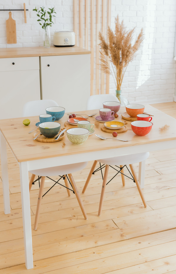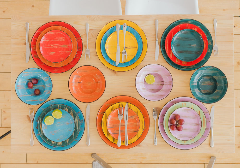 Если у вас слишком переменчивая натура, чтобы выбрать какую-то одну гамму, предлагаем использовать красочный микс. Соберите набор посуды самых разных оттенков и создавайте новые сочетания хоть каждый день.