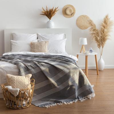 Мягкий хлопковый плед придётся по душе любителям почитать книги прохладным летним вечером на веранде или во дворе. За счёт жаккардового плетения изделие сохраняет тепло, но при этом с ним не будет жарко. Советуем выбирать не светлые, а более практичные оттенки, например серый или мокко.