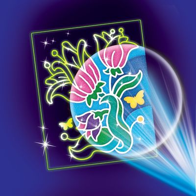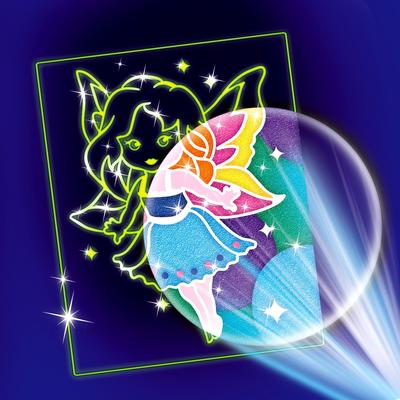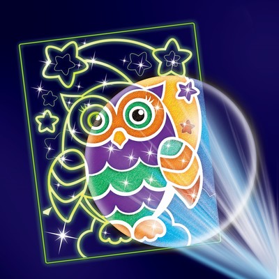 Их оценят самые маленькие любители творчества, ведь наборы подходят детям от 3 лет. В комплект входит картинка-основа, блёстки и светящийся песок. Чтобы сделать фреску, малышу нужно по очереди отклеивать с деталей подложки защитный слой и заполнять их материалом определённого цвета. Когда картина будет закончена, подержите её под лампой и выключите свет — ребёнок увидит, как его работа засияет!