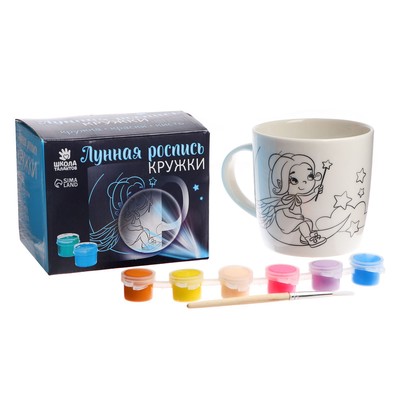 Когда своей работой можно не только любоваться, но и пользоваться каждый день, это вдвойне приятно. Поэтому ребёнок наверняка захочет обзавестись авторской кружкой. Чтобы её смастерить, понадобится набор для лунной росписи — готовый или составленный самостоятельно. В нём должна быть посуда с контуром, кисточка и флуоресцентные краски. Художнику потребуется поэтапно расписать ёмкость и запечь её в духовке, чтобы пигмент схватился. Мерцающий сувенир готов!