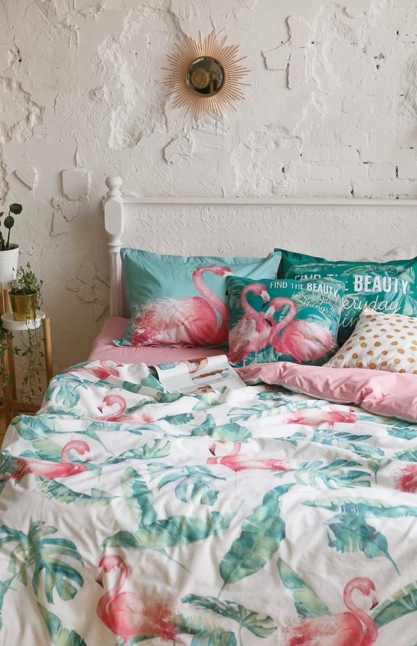 Считаете, что принт с эффектными птицами подходит только для милой детской? Сейчас мы вас переубедим. В правильной дозировке розовые фламинго отнюдь не смотрятся наивно, а делают пространство вдохновляющим. Достаточно нескольких деталей, и комната превращается в яркий оазис.