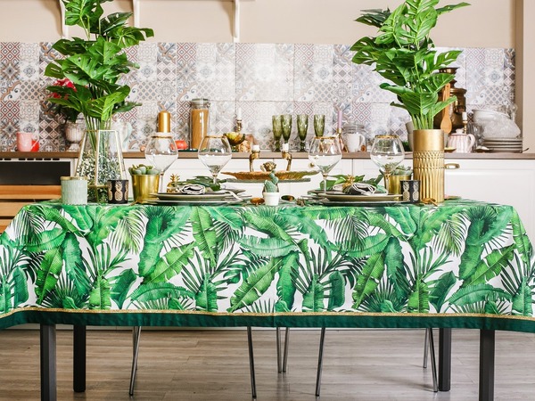 Такой декор универсален: его можно сделать главной идеей оформления или миксовать с другими принтами. Зелёные папоротники и бамбук прекрасно сочетаются как с розовыми фламинго, так и с сочными цитрусовыми.
