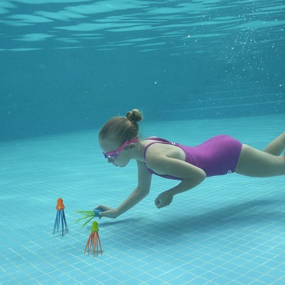 Плавание может быть не только полезным, но и увлекательным. Помогите ребёнку сделать водный спорт интереснее. Всё необходимое для подводных игр ищите в разделе