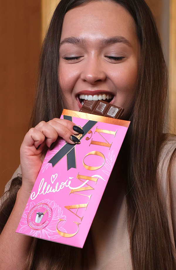 Нежностей и милостей для девушек много не бывает. Поэтому шоколадки и конфеты с приятными пожеланиями зайдут на ура в любой день в году.