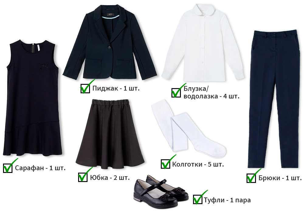 Главное правило формы — она должна соответствовать официальному дресс-коду учебного заведения и быть удобной. Чтобы ребёнок всегда выглядел отлично, рекомендуем приобрести несколько вариантов школьной одежды. Так получится сочетать вещи по-новому каждый день недели.