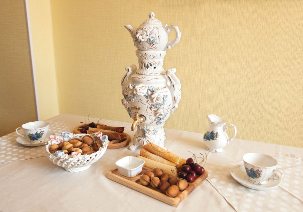 Условности чаепития, принятые на Востоке, у нас не прижились. В России не одобряли пустой чай — подавали к нему хлеб, сладости, фрукты. Обязательно стелили скатерть на стол и подкладывали салфетки под блюдца. В журналах для них даже печатали специальные выкройки. Конечно, обязательным был и красивый самовар, который впоследствии стал символом русской культуры.