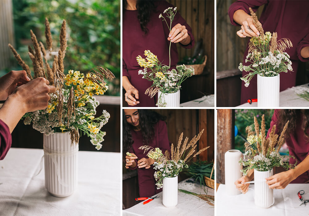 Выберите вазу, в которую планируете поставить букет. Мы остановились на однотонной модели без декора, чтобы ничего не отвлекало глаз от тонкой красоты полевых цветов.