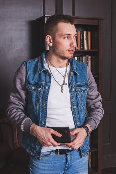 Чтобы осенний образ с денимом не выглядел пресным, добавьте цветные сумки. Чем темнее и насыщеннее одежда, тем светлее должны быть аксессуары. Если мужчина не готов к модным экспериментам, предложите глубокий кофейный или песочный оттенки — они будут напоминать о ковбойской теме и сделают образ брутальным.