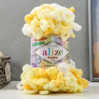 Вы можете использовать любые нити с готовыми петлями. Для мастер-класса мы взяли пряжу из микрополиэстера торговой марки ALIZE. Она гипоаллергенная, мягкая и лёгкая, с ней просто работать.