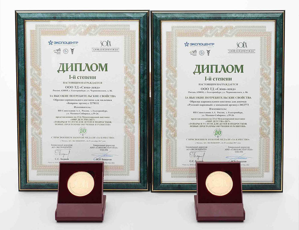 Удобные карнавальные костюмы — больше не миф. Это подтверждают 2 золотые медали, которые завоевали наши детские костюмы. Секрет успеха — в использовании натуральных материалов, эксклюзивном дизайне и продуманном крое. В костюмах «Страна Карнавалия» дети чувствуют себя комфортно на протяжении всего праздника.