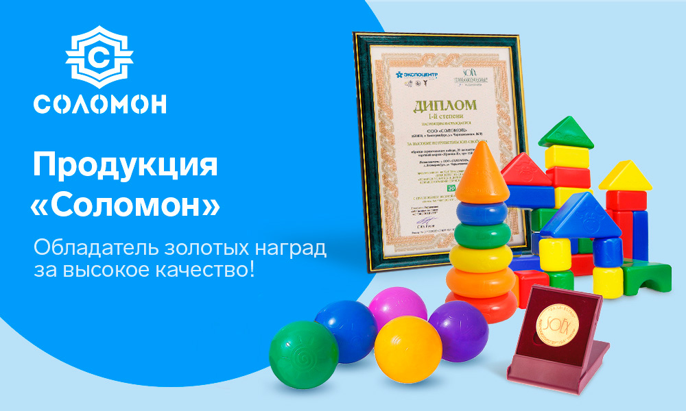 Награду вручили пластиковой продукции «Соломон». Под этой торговой маркой мы изготавливаем игрушки, спортивный инвентарь, посуду для хранения и хозтовары. Все изделия производятся в России исключительно из отечественного сырья. Благодаря строгому контролю на всех этапах изготовления продукция заслужила любовь покупателей и признание экспертов.