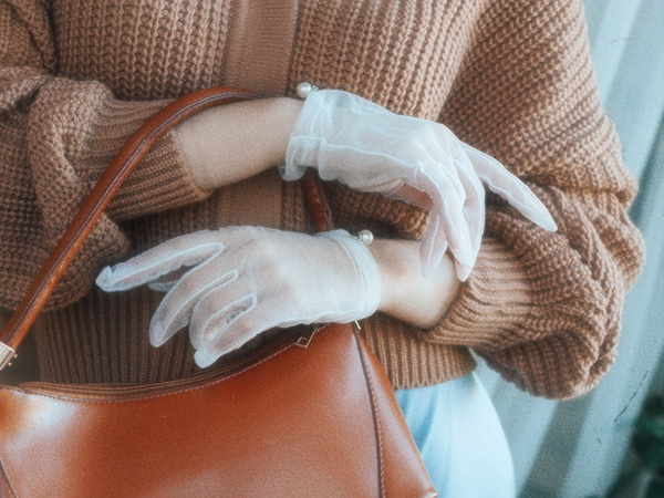 Детали. Одежда пастельных оттенков, юбка миди, сумочки — каркасные на замке или фермуаре. А ещё непременные атрибуты: полупрозрачные перчатки и головной убор.