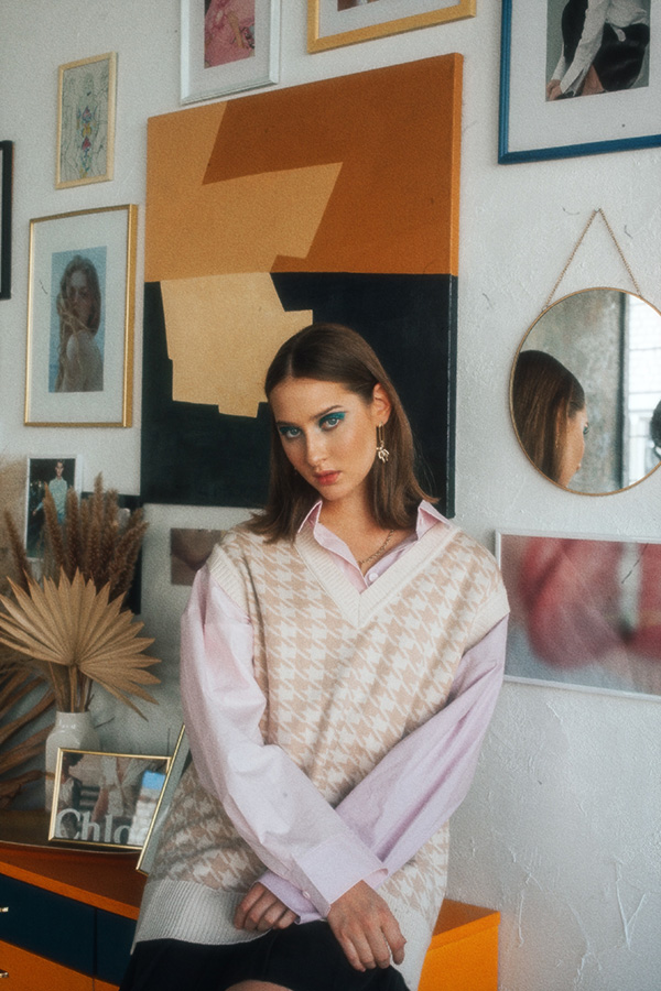 Детали. Короткие юбки, широкие рукава, аксессуары дерзкого дизайна, принт пье-де-пуль («гусиная лапка»).