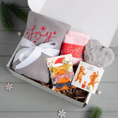 Порадуйте юного джентльмена новогодними подтяжками на праздничный вечер, тёплыми носками, пижамой с тигром и мягкими тапочками. А маленькую леди — набором для красоты.
