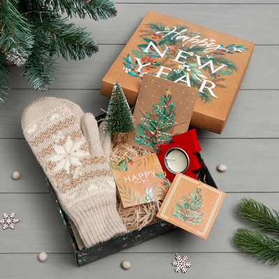 Практичные комплекты с брутальным дизайном — то, что надо для молодых и энергичных мужчин. Наборы с носками, термосом или пледом придутся кстати тем, кто любит долгие зимние прогулки.