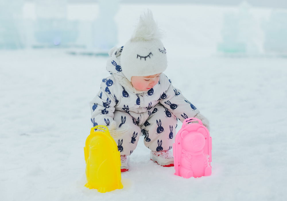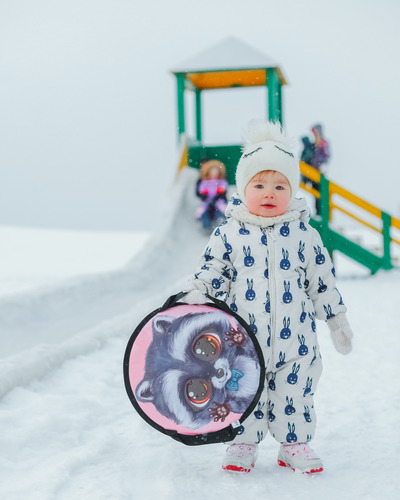 На прогулке с крохой пригодится пустышка и влажные салфетки, а ещё запасной плед — на случай, если малыш замёрзнет. Для детей постарше не забудьте положить игрушки: лопатки, снежколепы и, конечно, ледянку, если ребёнок уже достаточно взрослый, чтобы кататься с горки.