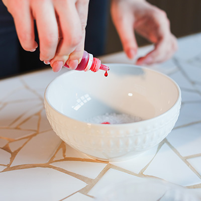 Смешайте основу с красителем. Добавьте несколько капель ароматизатора.