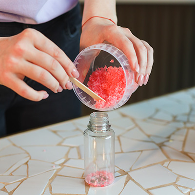 Чтобы изготовить цветные гранулы, достаточно капли красителя и концентрата аромата, а также немного терпения. В результате опыта получатся маленькие жемчужинки, которые наполнят воздух в ванной волшебным ароматом, а воду окрасят в приятные цвета.