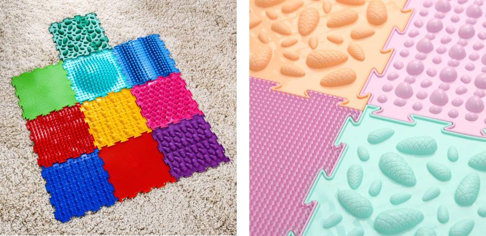 Пазлы представляют собой рельефные модули, которые скрепляют в единое полотно. Благодаря разной фактуре и степени жёсткости деталей, они оказывают массажный эффект. Изделия улучшают циркуляцию крови в ногах, тренируют связочный аппарат и помогают правильно сформировать своды стоп. Если заниматься регулярно, можно не переживать, что с ножками возникнут проблемы.