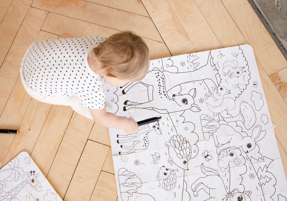 Расстелите коврик и объясните ребёнку, как с ним играть. Одни модели можно раскрашивать, другие нужно собирать как пазлы, третьи предполагают игру с машинками.