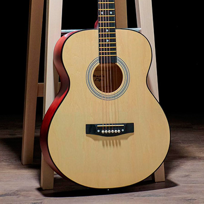 Металлические струны делают музыку на акустической гитаре яркой и звонкой. На этом инструменте эффектно будут звучать хиты группы «Чайф» или Rolling Stones.