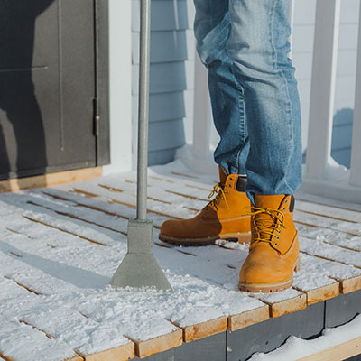 Помогут справиться с наледью на крыльце домика или бани. После того, как нанесёте состав на поверхность, пройдитесь по ней ледорубом. Так реагент быстрее начнёт действовать. Только делайте это без фанатизма, иначе на крыльце останутся некрасивые полосы или даже трещины.