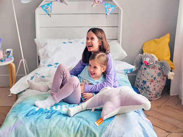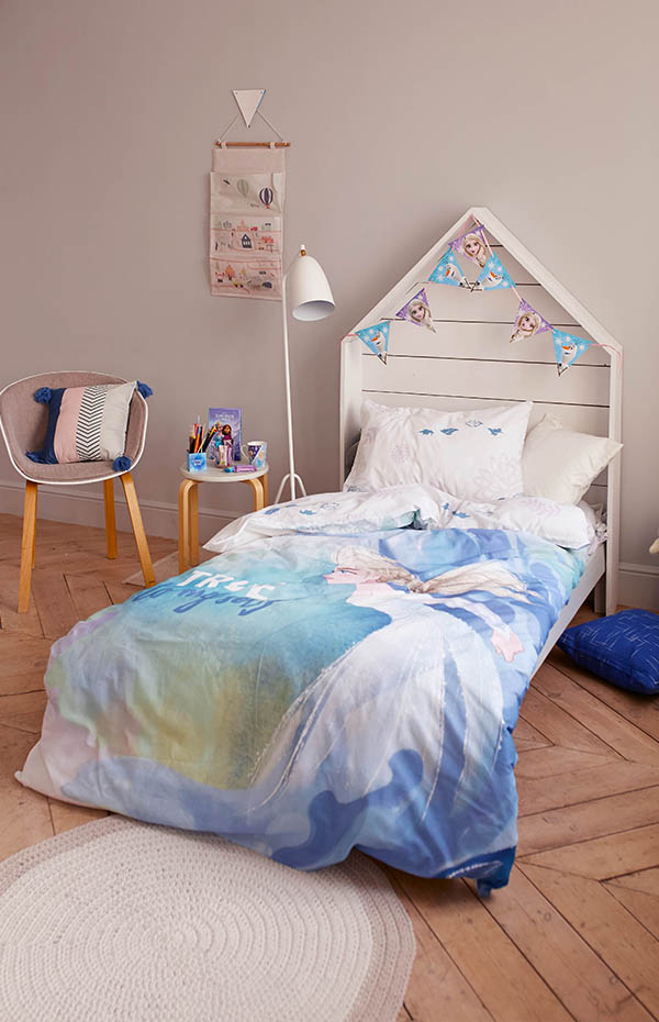 Порадуйте своих принцесс пижамной вечеринкой в стиле «Холодного сердца». Оформить комнату вам помогут бумажные гирлянды, постельное бельё с изображением Эльзы и подушки в том же стиле.