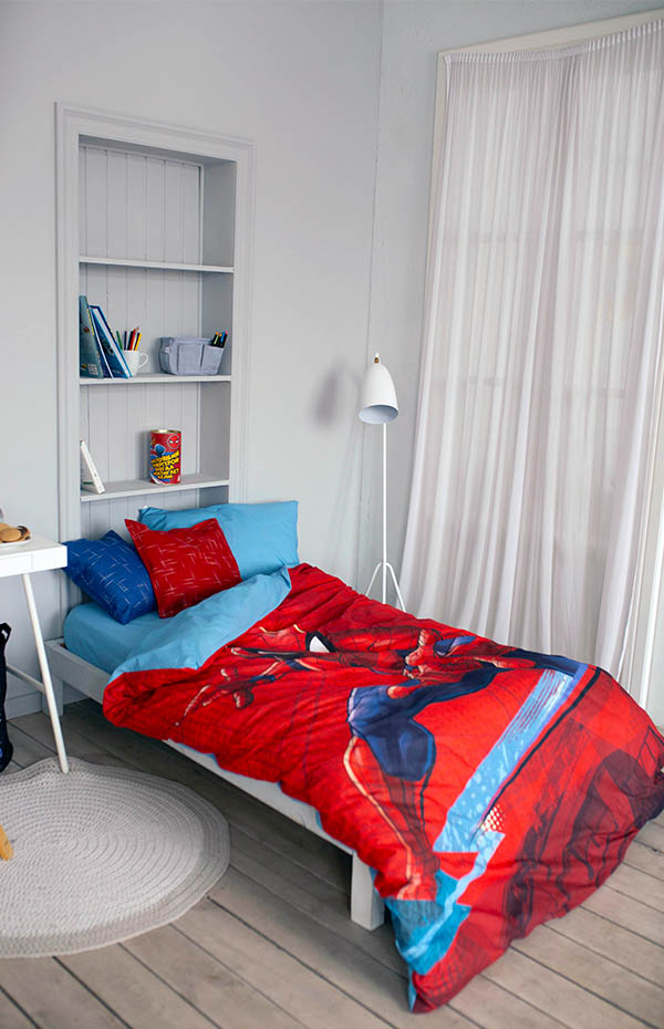 Супергеройскую тусовку оценят смелые и крутые мальчишки и девчонки. Создайте нужное настроение с помощью красочного текстиля с Человеком-пауком, подушек и декоративных элементов.