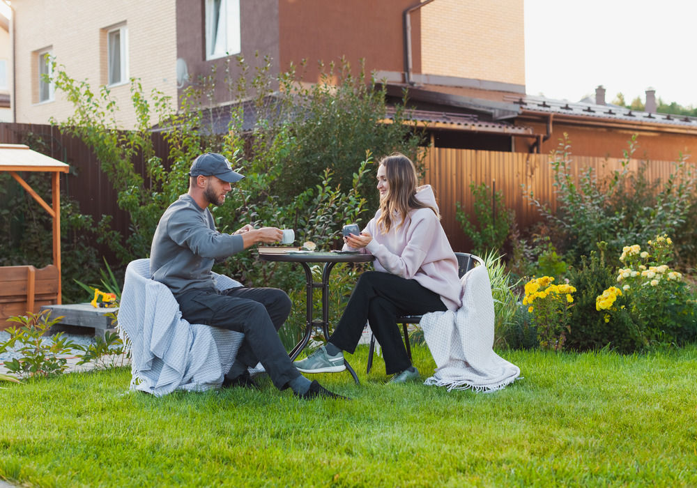 Мечтаете о чаепитиях на свежем воздухе и посиделках в узком кругу — чтобы болтать, играть в настолки и наслаждаться летом? Создать такой уголок для отдыха можно с минимальными затратами: для этого понадобится только стол и несколько кресел. Если бюджет и площадь участка позволяют, поставьте диван — он вместит больше человек. А украсить площадку помогут композиции из цветов и садовые фигуры.