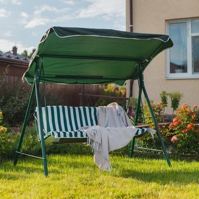 Качели — первое, что приходит в голову, когда представляешь релакс на даче. На них можно уютно растянуться с книжкой, поболтать по душам с соседями и даже подремать, спрятавшись от солнца.
