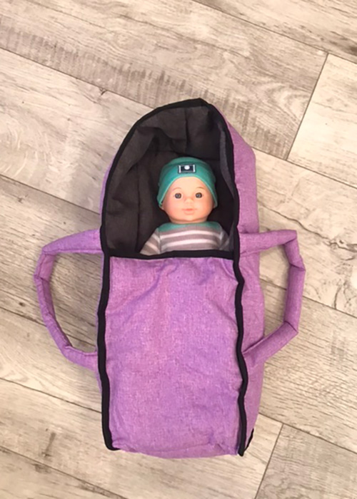 У неё внутри есть люлька с удобными ручками. Её можно вынуть, а спинку приподнять — и у вас получится прогулочный вариант коляски для куклы.