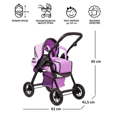 Коляска для кукол, универсальная, с переноской, корзиной