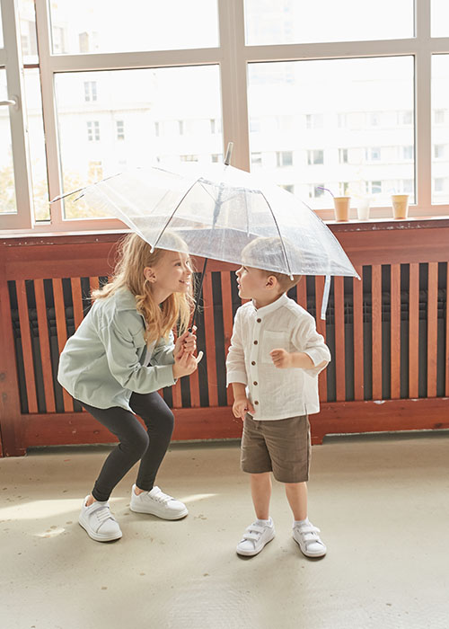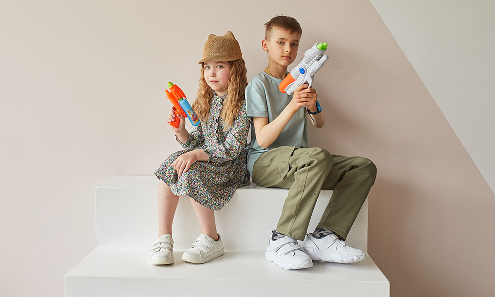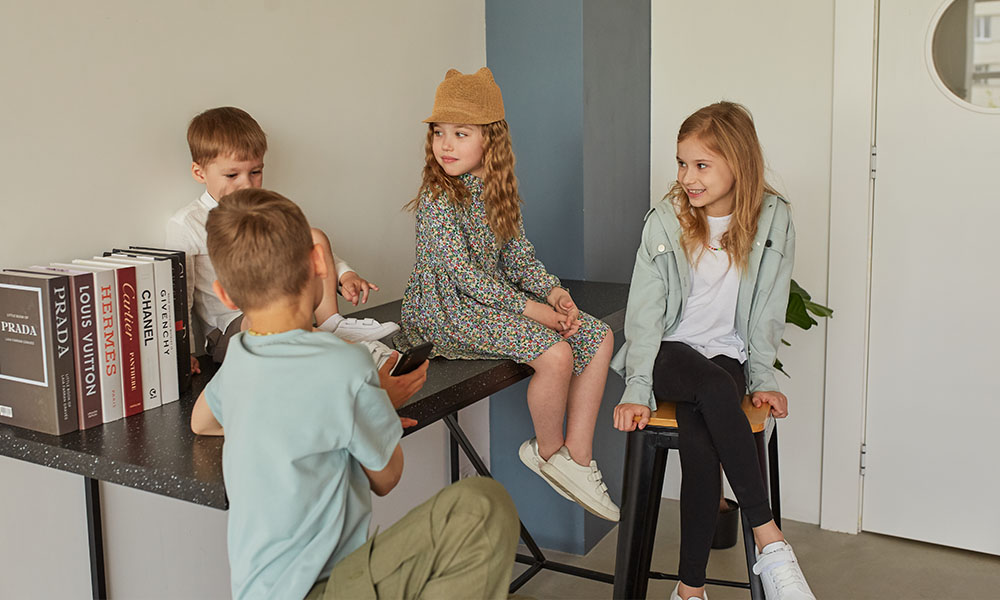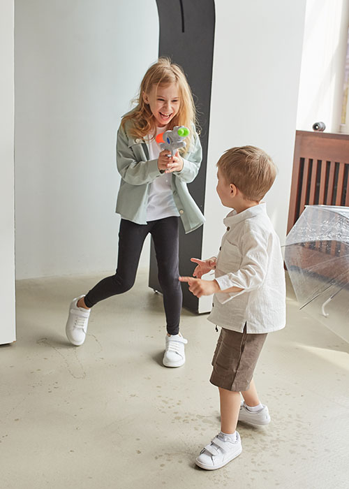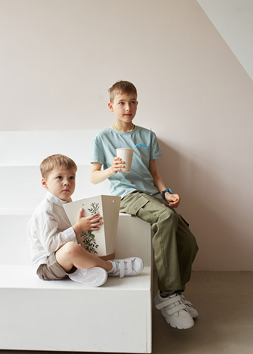 Минуту назад дети сидели и обсуждали, какая игрушка самая лучшая, а сейчас уже играют в догонялки? Таким активным непоседам необходим практичный аутфит. Любимая футболка и низ в тёмных оттенках — отличный вариант для прогулок и игр дома. Этому образу не страшны пятна: в отличие от светлых вещей, здесь они будут почти незаметны.