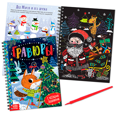 На обратной стороне гравюры есть задания на поиск отличий и слов, лабиринты, логические задачки.