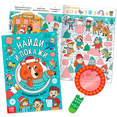 На плотных ярких страницах ребёнок найдёт новогодних персонажей и много интересных заданий. А выполнить их предстоит с помощью волшебной лупы. Кстати, для неё в книге предусмотрено специальное место с липучкой — чтобы прибор не потерялся.