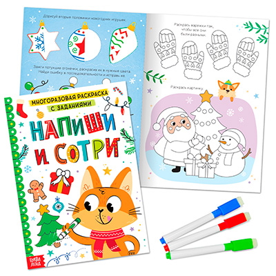 Многоразовая раскраска с заданиями и маркерами