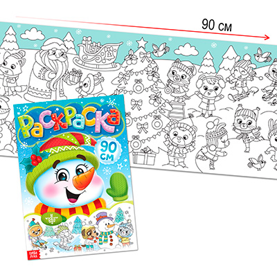 Длинная раскраска позволит занять одновременно 2–3 малышей. Когда основное поле закончится, то раскраску можно перевернуть и продолжить творить — на обороте книжки есть ещё один сюжет. Скучать точно не придётся!