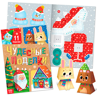 Внутри книги вас ждут 11 новогодних фигурок. Предложите малышу смастерить все и соберите небольшой городок с жителями. Ребёнок будет играть фигурками по отдельности и воспроизводить любимые волшебные истории. А ещё поделки можно вручить близким в качестве новогоднего сувенира.