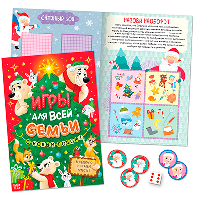 На последней страничке в книге ребёнок найдёт фишки и кубик для одной из представленных игр. Кстати, кубик подойдёт и для игры «Зимняя бродилка».